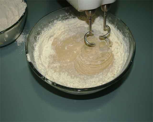 3. Añade la harina y amasa hasta tener una masa consistente pero no dura.