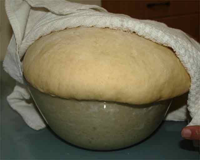 4. Forma una bola con la masa, cúbrela con un paño limpio y deja reposar unas 3 horas (o hasta que la masa duplique su tamaño debido a la fermentación).