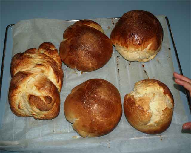 Dificultad: Baja -:- Duración: 1 hora (más 3 horas y 40 minutos de reposo y entre 30 y 40 minutos de horneado) -:- Ración: 5 panes